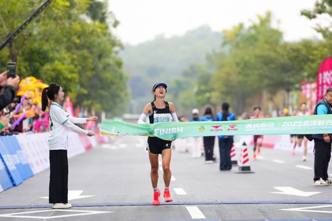 值得一提的是,本届赛事创新性推出“破9吃鸡”激励机制,成为国内赛事的趣味标杆。男子选手跑进1小时30分、女子选手跑进1小时45分,即可获得温氏股份提供的5只中华土鸡大奖,以硬核福利致敬竞技精神。同时,赛事首次在赛后为所有选手提供新兴特色美食补给,从鲜美的土鸡料理到地道的新兴炒米粉、烤乳猪,让跑友在完赛后补充能量的同时,深度感受本土饮食文化的烟火气息。