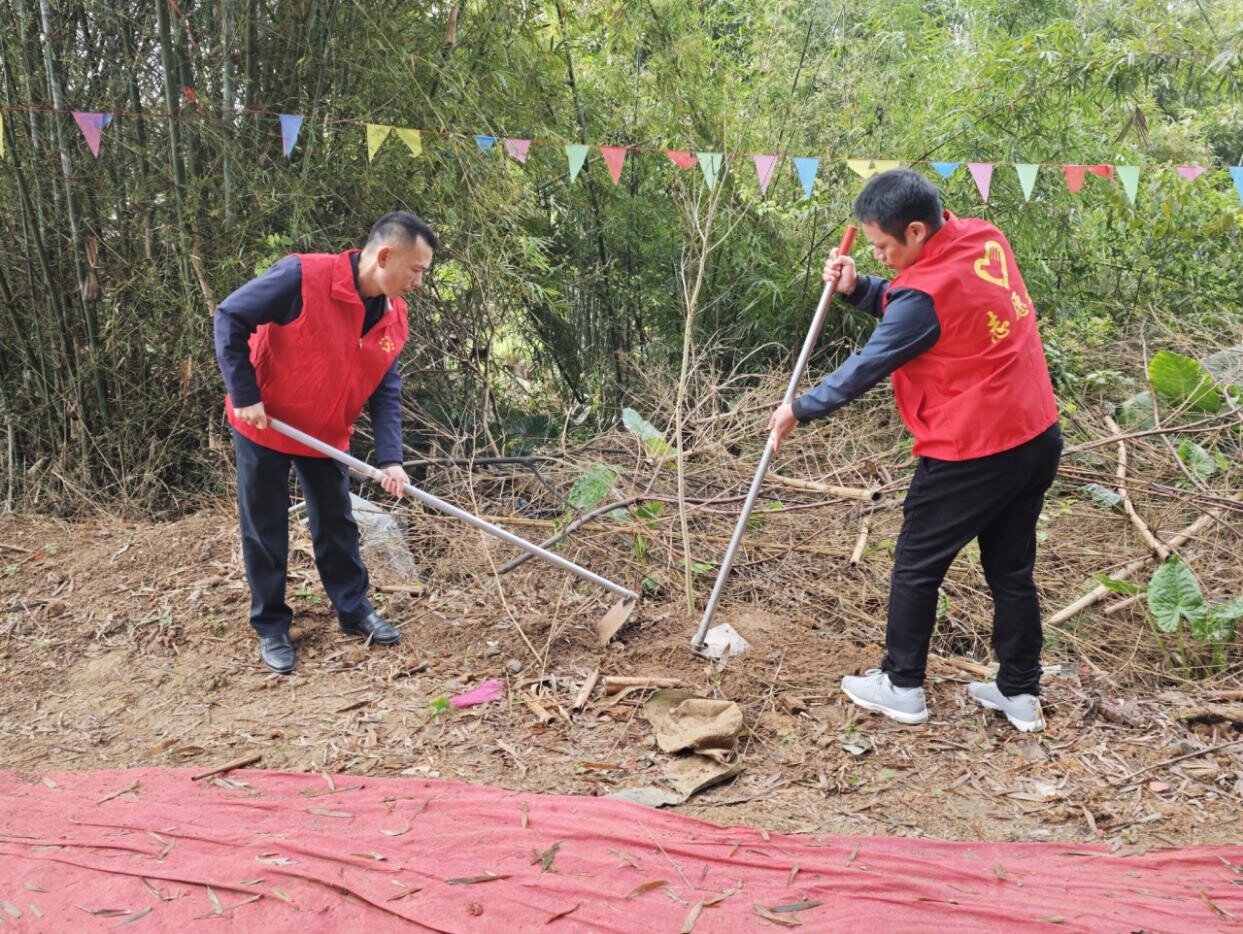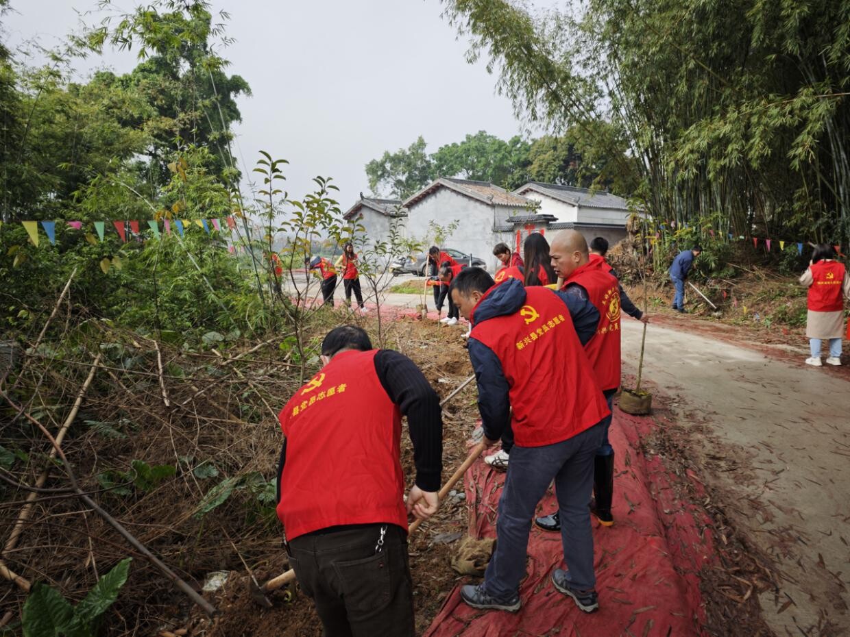 在植树活动现场,中心干部职工三五成组,大家干劲十足,挥锹挖坑、扶苗填土,分工协作,用心细致栽种每一棵树苗,与镇村干部及志愿者共种植88棵树苗,其中冬青58棵,黄花梨30棵,共同为乡村绿化工作增绿添彩,以实实在在的工作成效助力绿美新兴生态建设,为“百千万工程”绿美生态建设贡献一份力量。