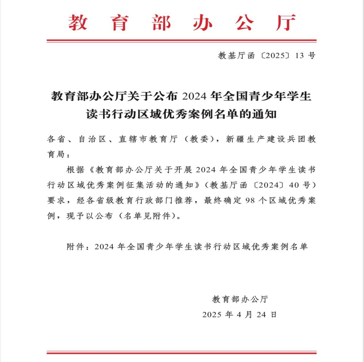 喜讯:新兴县报送的2024年全国青少年学生读书行动区域优秀案例获教育部表彰