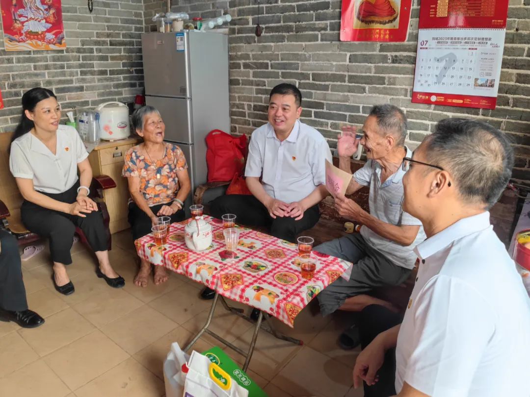 赖鉴铭分别来到新城镇在新中国成立前入党老党员区彬、天堂镇东震村退役党员军人容承钊、老党员干部何佐兰家中,与他们亲切交谈,仔细询问他们家庭和身体情况,为他们送上慰问金和慰问品,感谢他们为党和人民事业作出的贡献,并叮嘱他们一定要保重身体,继续发扬共产党员的先锋模范作用,积极发挥余热,主动奉献余温,多提宝贵意见和建议,为打造高质量发展的融湾先行示范县、加快奋进全国百强县贡献力量。