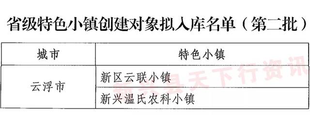 10月25日,广东省发展和改革委员会官网发布《关于省级特色小镇创建对象拟入库名单(第二批)的公示》,广东省各市共计有55个小镇入选,其中云浮有2个特色小镇上榜,分别是新区云联小镇、新兴温氏农科小镇。