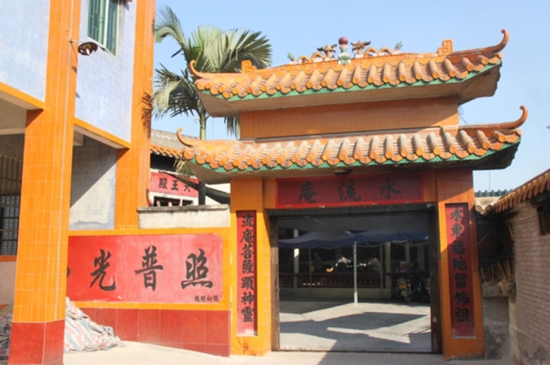 新兴县水流庵 位于县城水东岸内。建有天王殿、大雄宝殿、六代祖师殿、观音殿、功德堂等,占地面积达1000平方米。