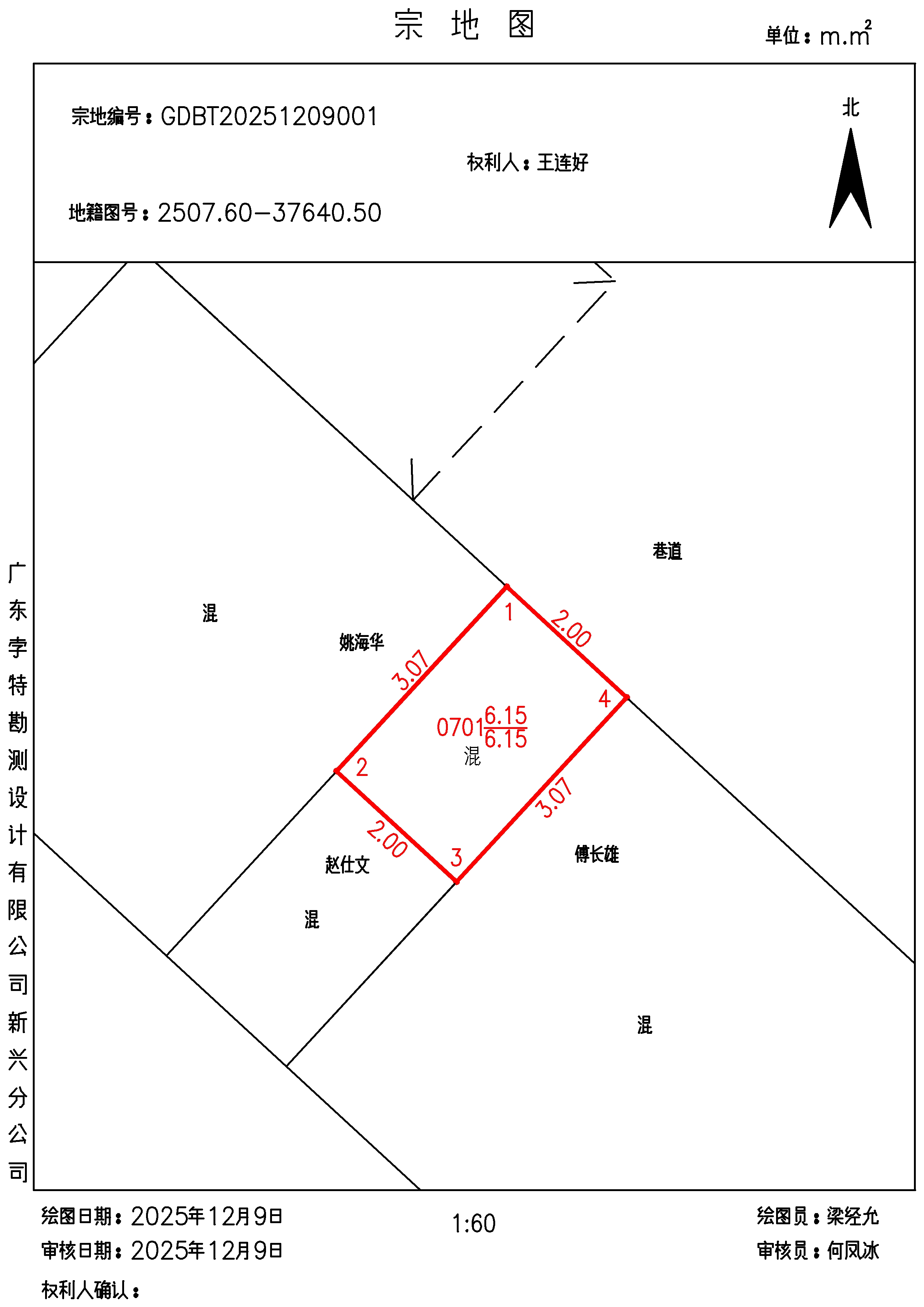 现王连好申请将坐落在新兴县稔村镇稔村教师村第三幢403房车房的土地使用权登记发证,该土地权利类型为国有建设用地使用权,权利性质为划拨,用途为城镇住宅用地,该车房的宗地面积为6.15㎡,四至详见附图。如对上述公布的土地权利有异议,请当事人于公告之日起15个工作日内,到我局登记股申请复查手续,逾期没有提出异议或异议不成立的,上述公布的权益有效,将准予注册登记。